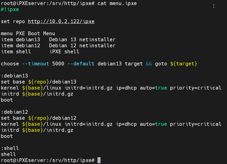 De computer start op met de PXE ROM stack en krijgt boot informatie terug van de DHCP-server. Die informatie bestaat uit een IP-adres en de bestandsnaam die geladen kan worden. De computer download IPXE via TFTP of HTTP. Het IPXE bestand haalt vervolgens een script op waar de logica in staat. Nadat de gebruiker een optie heeft geselecteerd in het keuzemenu, wordt de kernel geladen.