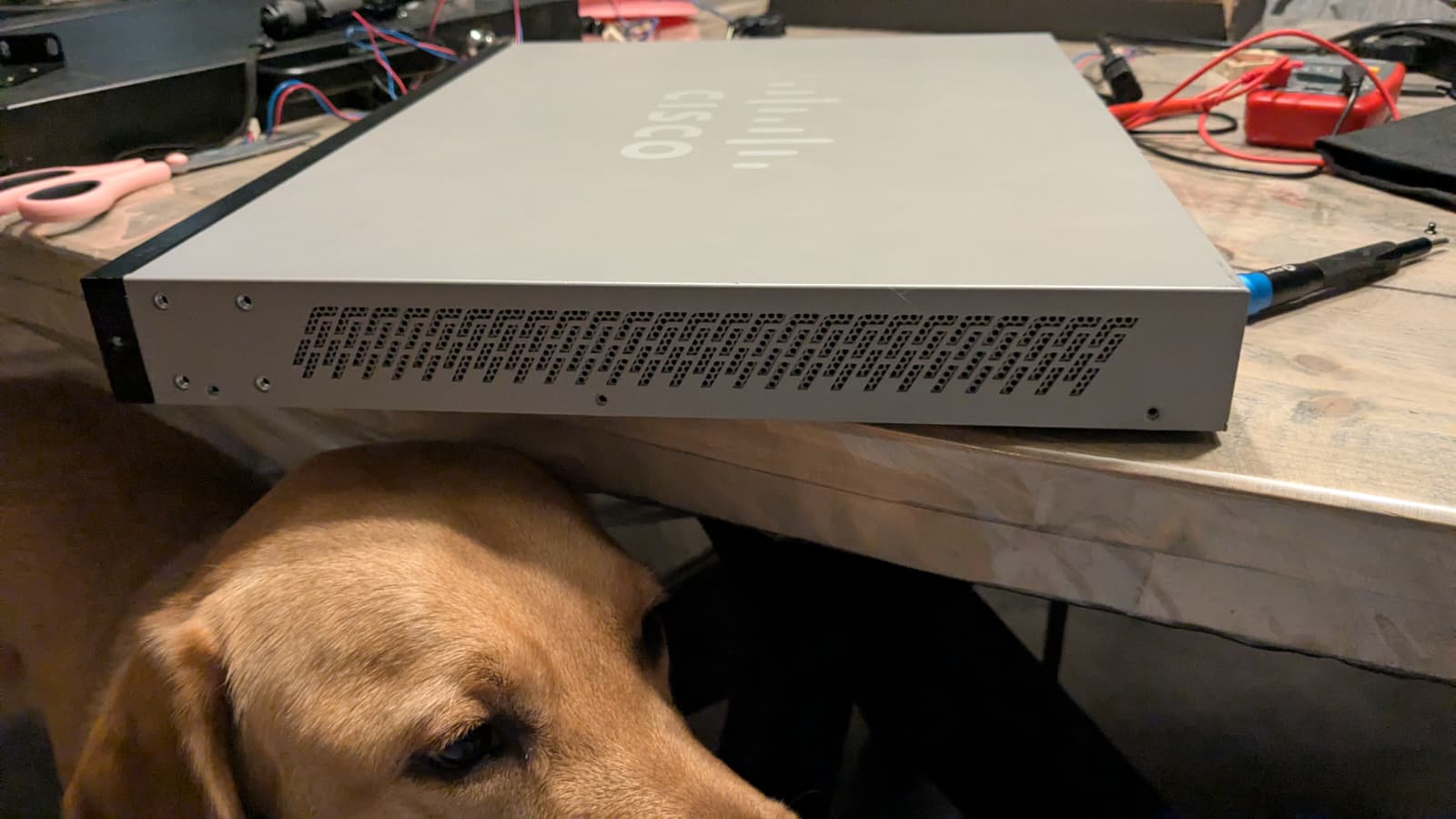Tussen de Zyxel switch en de Cisco heb ik nog een andere switch gehad. Deze had 24 PoE+ ports en werd ook erg warm. Na hier een fanmod gedaan te hebben startte de switch niet meer op. Na het terugplaatsen van de originele fans gebeurde er nog steeds niets. Wat bleek; de volgorde van de kabels op de 4-pin header kwamen niet overeen met de standaard volgorde die gehanteerd wordt bij consumenten computers met het gevolg dat er kortsluiting opgetreden was en de switch overleden was.