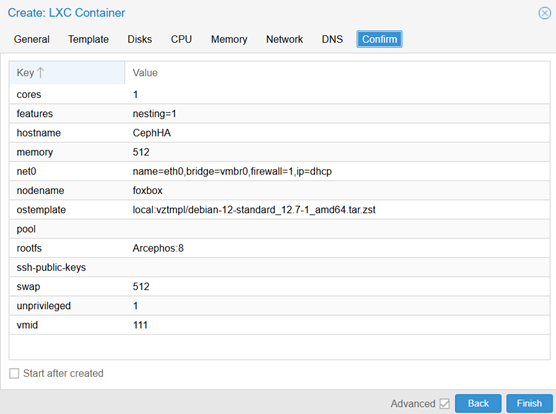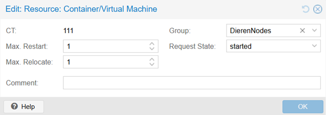- In proxmox aangeven dat de container als HA moet worden beschouwd